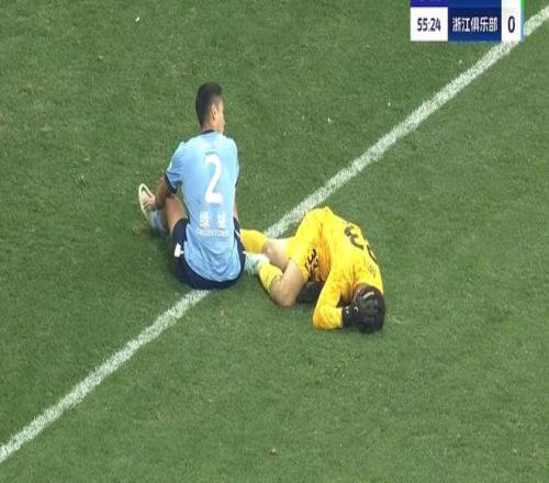 本场比赛,浙江队丢的第一个球是乌龙球,丢球之后,浙江队门将赵博坐在地上,嘴边里面念叨的字眼从嘴型上似乎是在吐槽:又来了又来了又来了!